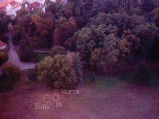 na sevřené psí loučce nad stromy. Hezky je vidět Šlechtovka, Knihovna,