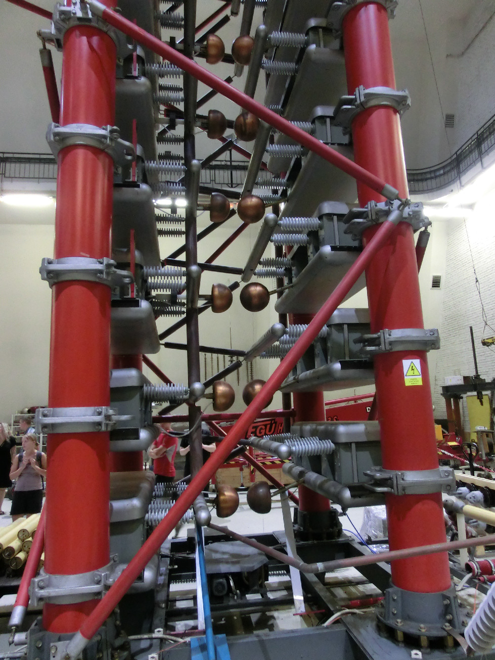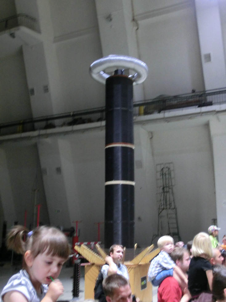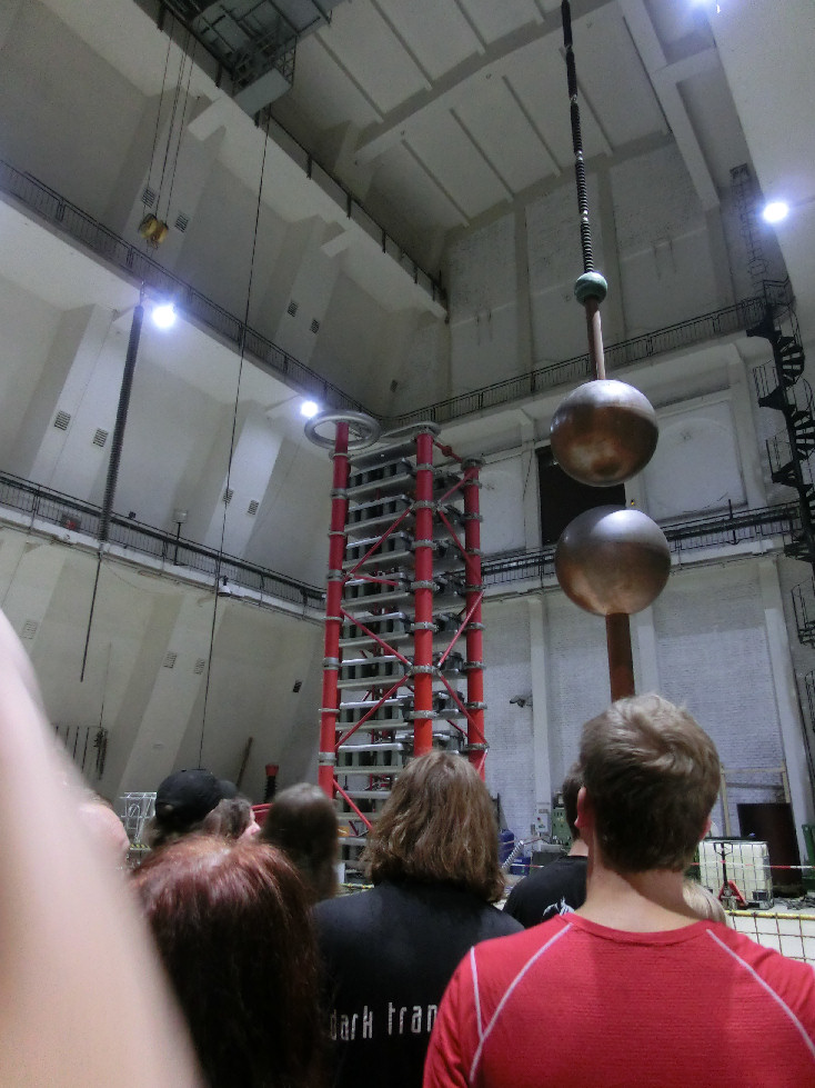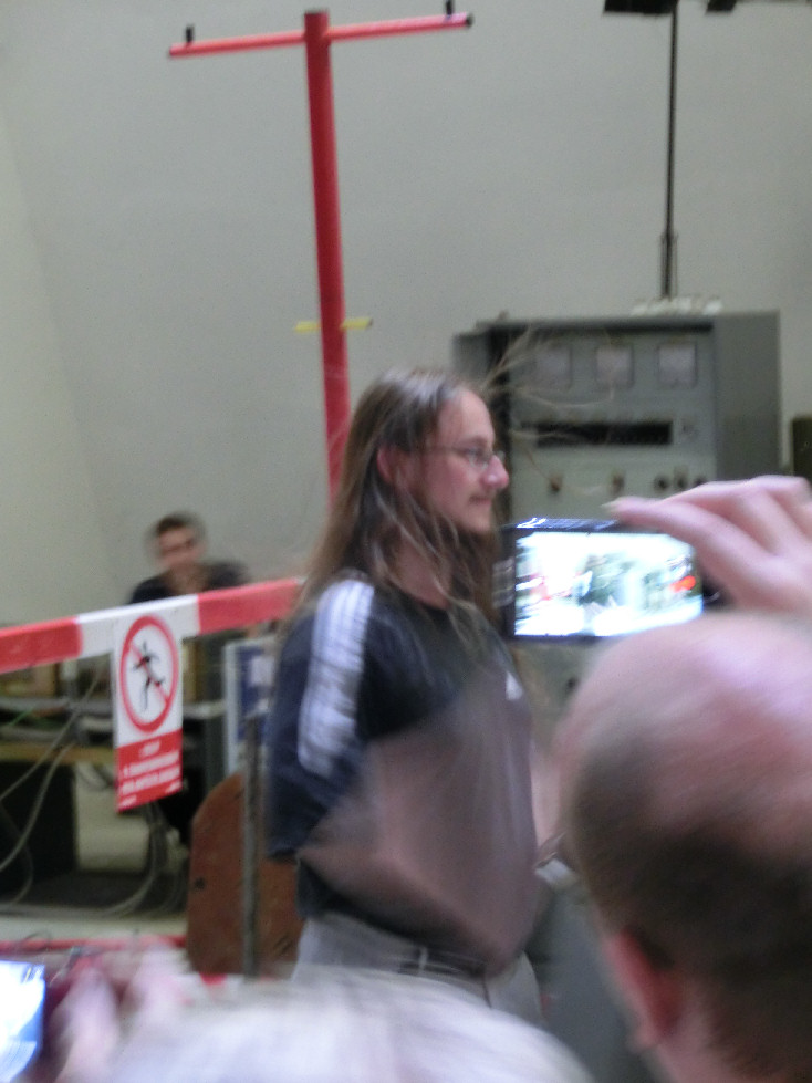 Lidé pod napětím. 70 kV stejnosměrných by mohlo být při troše snahy značně nebezpečné, ale vlasy z toho ještě moc nestojí.