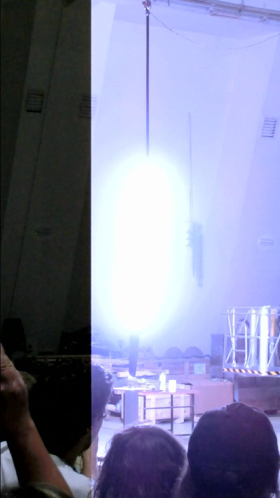 Marxův generátor simuluje úder blesku do listu vrtule. Snímek zcela vpravo je z videa. Je vidět, že k výboji došlo v době, kdy levá část obrázku již byla vyčtena ze snímacího čipu.