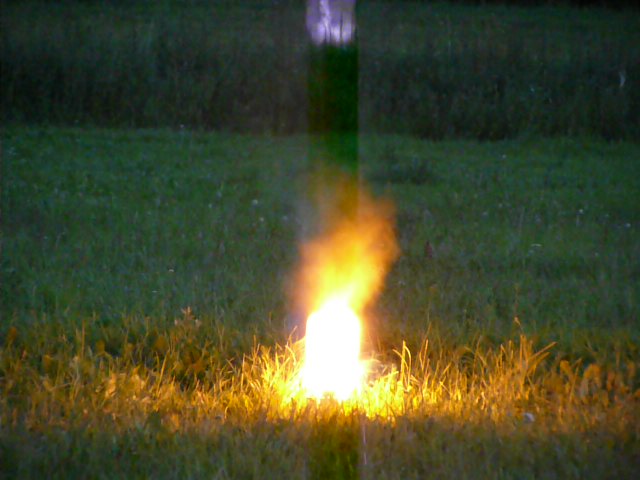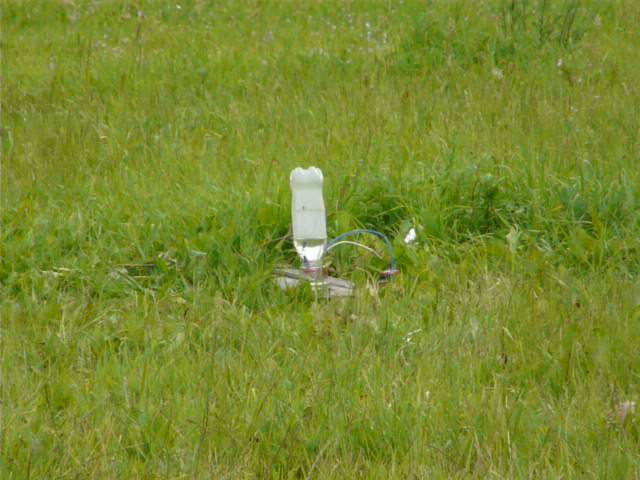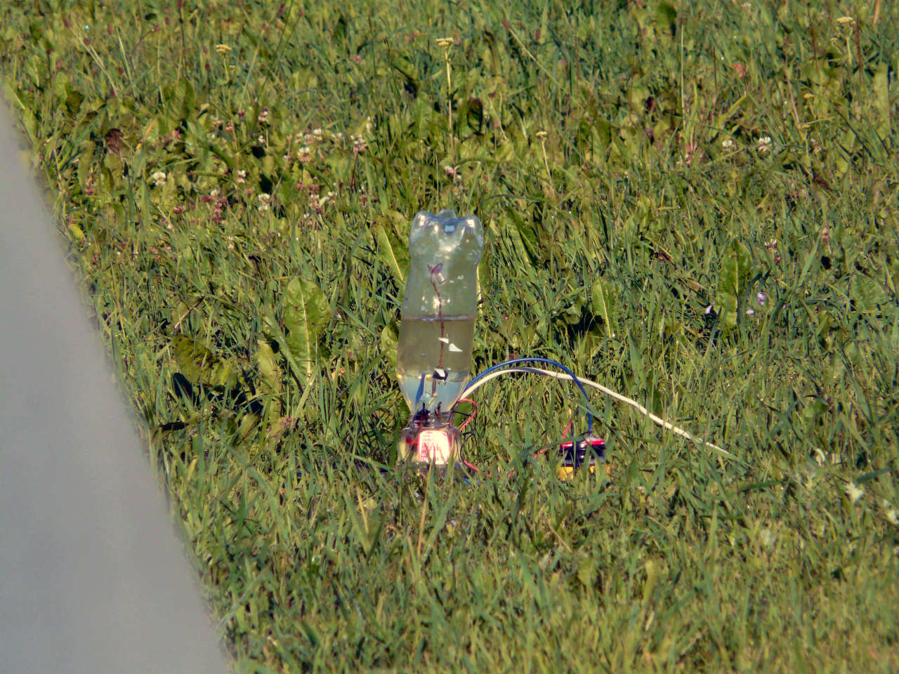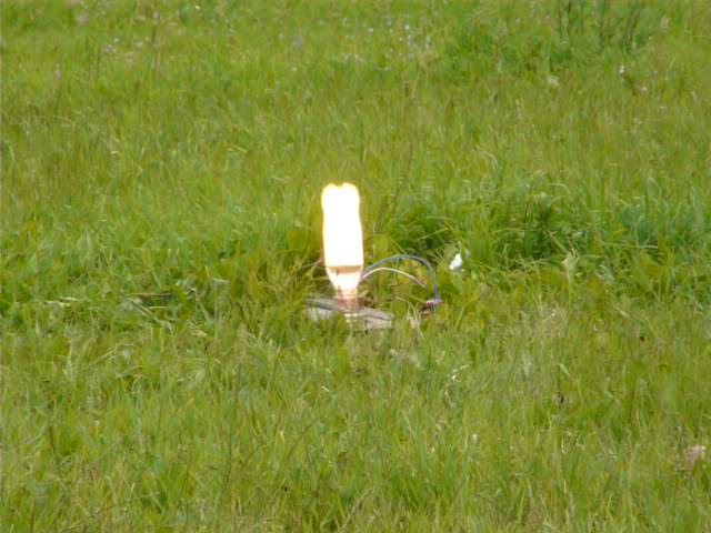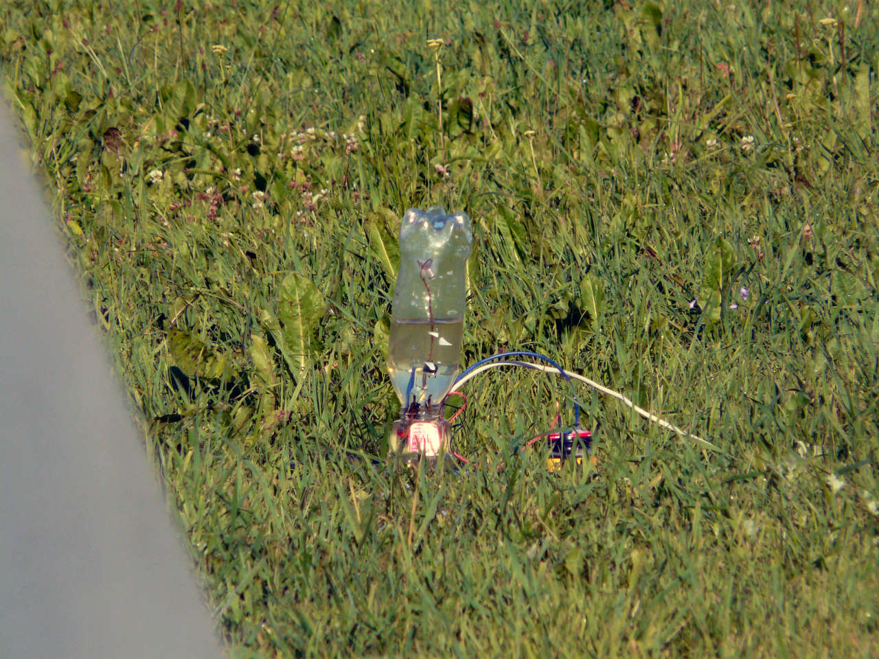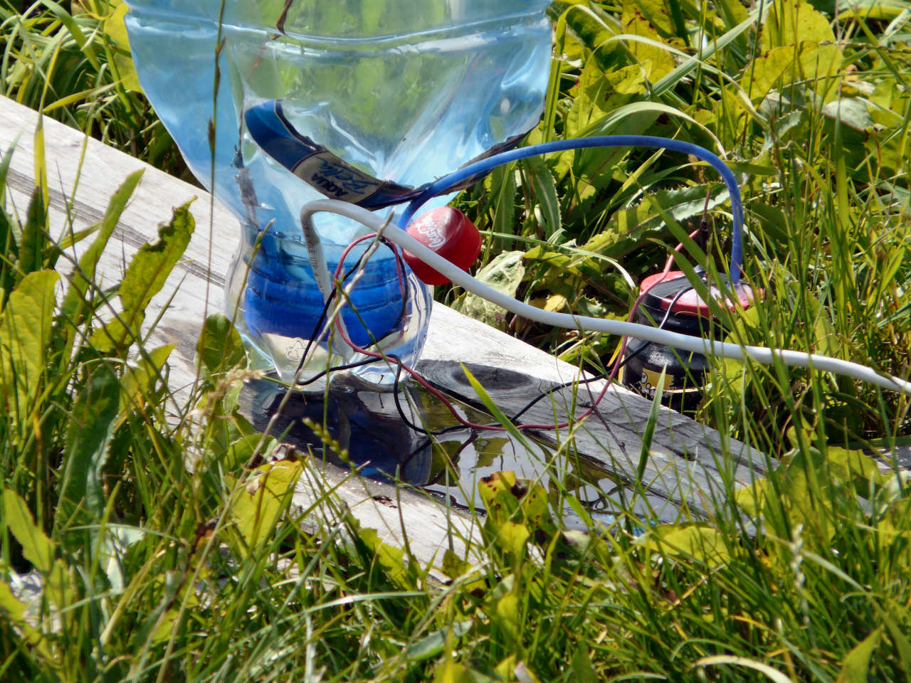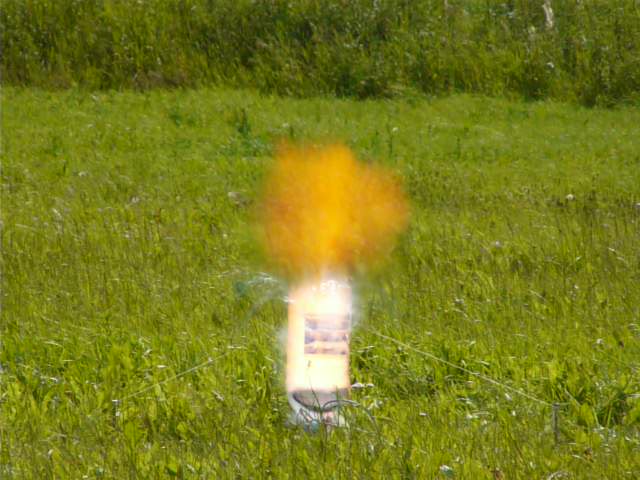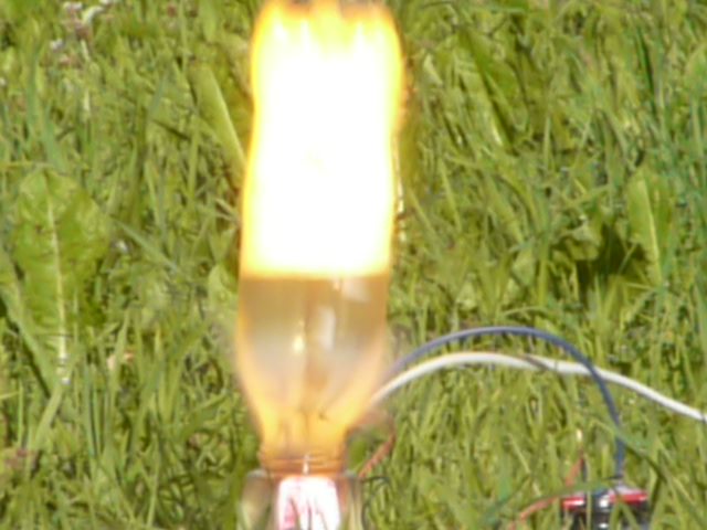 Na odpalovací stanoviště si po zahájení elektrolýzy připravte stativ s dalekohledem, nebo zoomovacím fotoaparátem a nastavte tak, aby byly vidět bublinky plynu. Od toho okamžiku již není potřeba k lahvi chodit a stačí jen vyčkat do naplnění. Před odpálením upozorněte přihlížející, aby po výbuchu nesahali na pozůstatky, protože mohou být potřísněny hydroxidem. Nakonec odpojíme elektrolyzér, vyčkáme, až si všichni správně nastaví foťáky a zapojíme žárovičku.