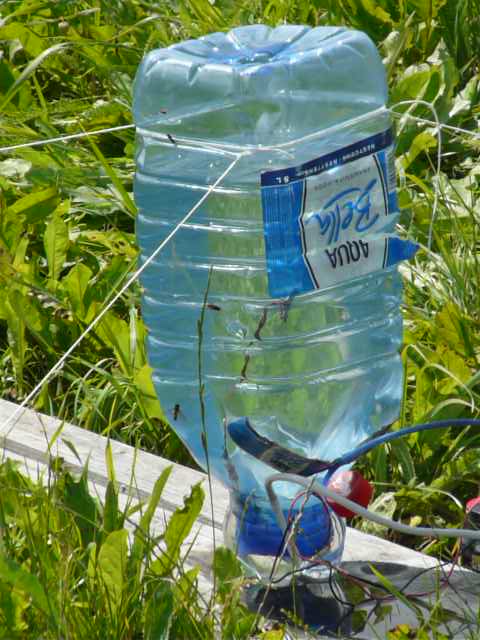 Nejjednodušší je "mokrá" metoda, kdy se hadička s plyny zavede do lahve naplněné vodou a otočené dnem vzhůru. Hrdlo je ponořené do malé nádobky, která slouží zároveň jako podstavec. Jedná se pravděpodobně o nejjednodušší způsob, jak nějaký prostor zcela zaplnit pomalu vyvíjeným plynem. Pro snažší sledování hladiny můžeme vodu obarvit. Hladina by neměla dosáhnout ke konci hadičky, jinak hrozí průnik plamene do elektrolyzéru.