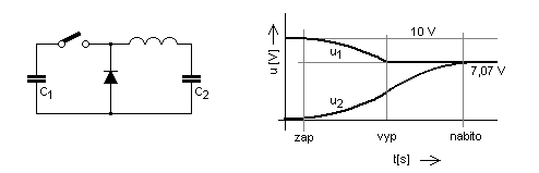 si nazávěr necháme vrátit přes diodu. - Při pokusu tedy počkáme, až z prvního kondenzátoru odebereme polovinu energie,