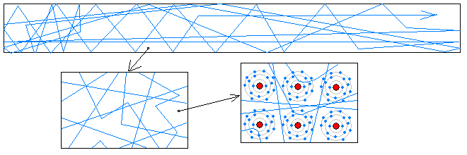 | Elektron jako míček v Pinballu: Odráží se od hranic jednotlivých mikrokrystalů a atomů. Někdy se člověk diví, jak to, že ty elektrické přistroje vůbec fungují. |