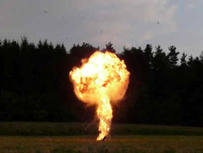 Občas také provádíme pokusy explozívního charakteru, zejména s vodíkem a kyslíkem, což má tu výhodu, že výbušná směs může vznikat v připraveném zařízení na konci ovládacího kabelu a tak se vlastně nikdo nemusí přiblížit k výbušnině. Jsou ale i další možnosti, lze předvést i různé filmové efekty, třeba jako když v americkém filmu havaruje auto.