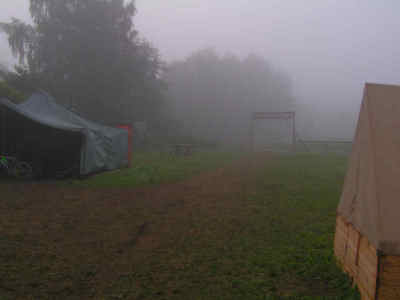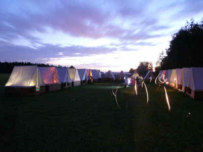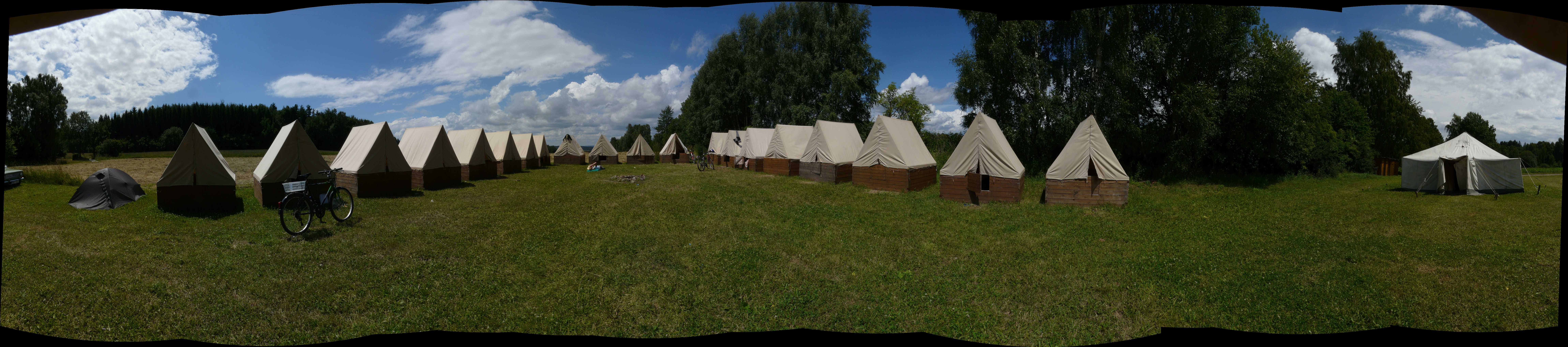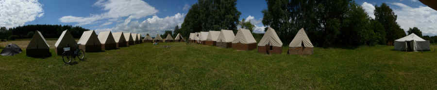 Tábor je stanový. Kromě stanů pro děti je zde stan pro kola, WC a umyvadlo.