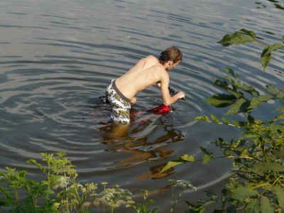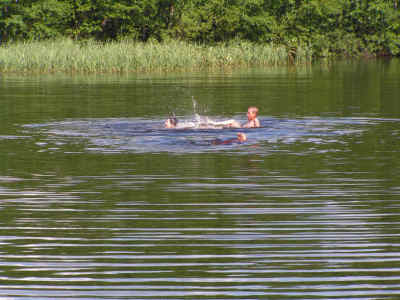 Když je hezky, vyrazíme k vodě. Jsme v jižních Čechách, takže v okolí je dostatek rybníků, které si říkají o přeplavání příčně i podélně. Jeden malý je dokonce hned u tábora. U vody se děti rozdělí na "cachtací" a "plavací". Ty první zůstanou u břehu, s druhými lze plavat na druhý břeh, či konec rybníka, případně kolem dokola. Kdo nemá příliš značkové kolo, může nahradit minerální olej ekologickým, určeným pro pily do lesa a zkusit "hydrocyklistiku". Jízda obvykle končí odlepením ode dna a vynořením kola z vody.